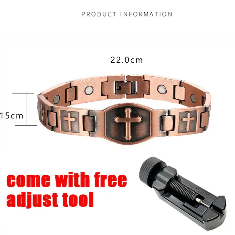 - This elegant copper magnetic therapy bracelet is the perfect solution for pain relief from arthritis during golfing. With its sleek design and powerful magnetic therapy technology, this bracelet helps to increase blood flow and reduce inflammation, relieving the pain and discomfort associated with arthritis. Made from high-quality copper, this bracelet is both durable and stylish, making it the perfect accessory for any golfer. Shop now and discover the benefits of magnetic therapy for yourself!