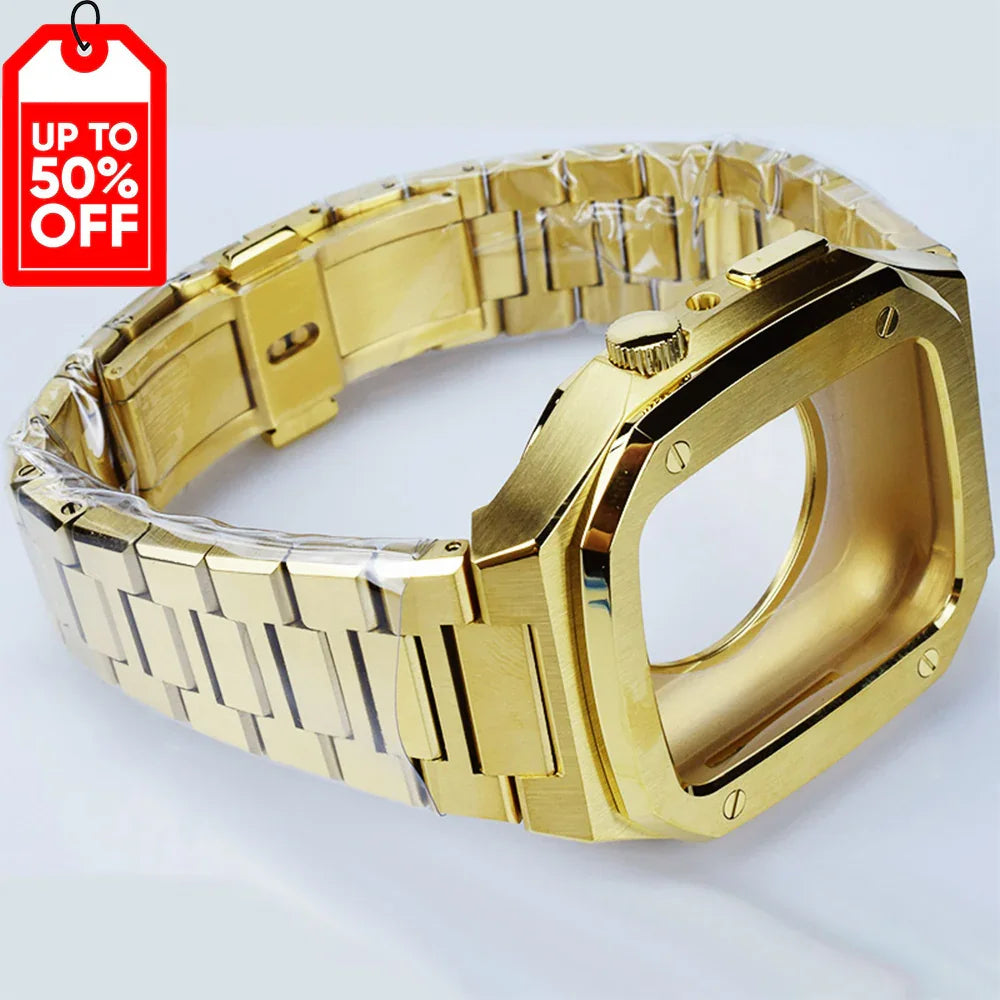 Upgrade your Apple Watch with this luxury steel case and band, designed for Series 7, 8, and 9 (45mm). Crafted from premium 316L stainless steel, this accessory delivers both durability and sophisticated style, perfect for everyday wear or special occasions.