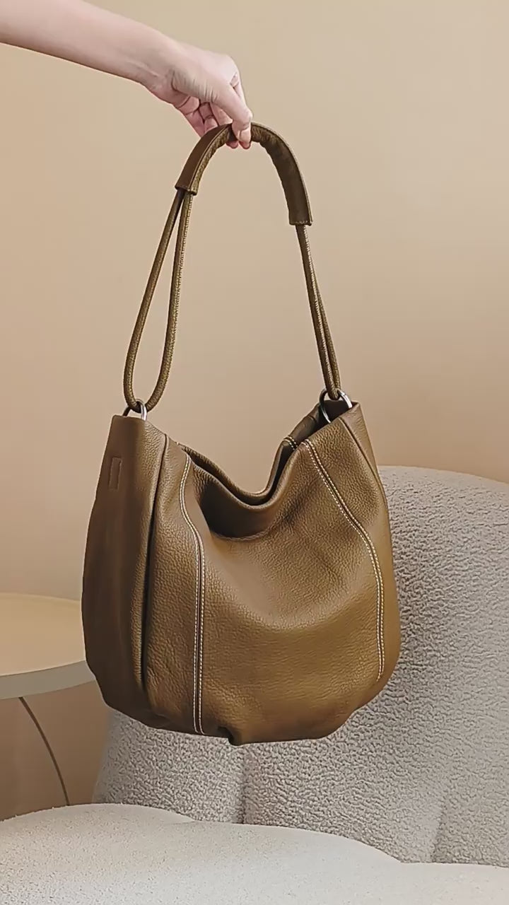 Women's Soft Cowhide Leather Tote Bag – Slouchy Brown Shoulder Handbag with Double Handles, Spacious Daily Purse