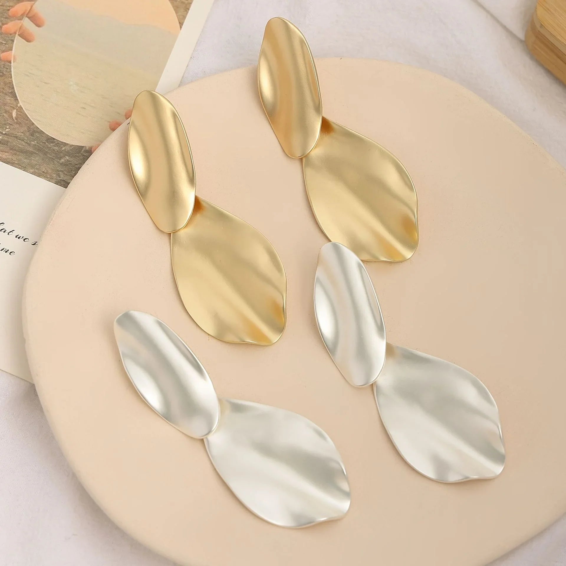 - These Matte Gold Silver Large Clip On Earrings feature a comfortable clip-on backing, ideal for women with non-pierced ears. Enjoy a statement look with these stylish earrings without the need for piercings.