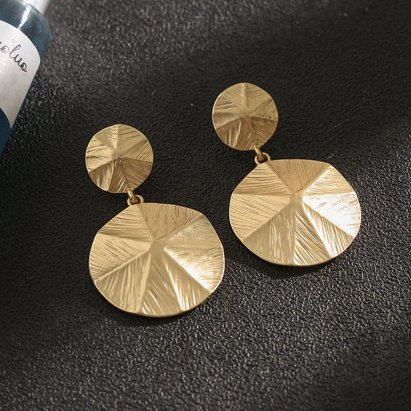 Gold Tone Textured Disc Drop Earrings Fold Pattern Dangle Earrings 【5Pack】