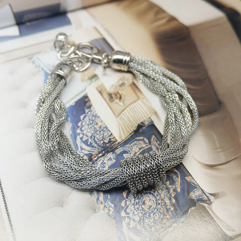 レディースバンケット多層チェーン織りシルバーブレスレットレディースブレスレット