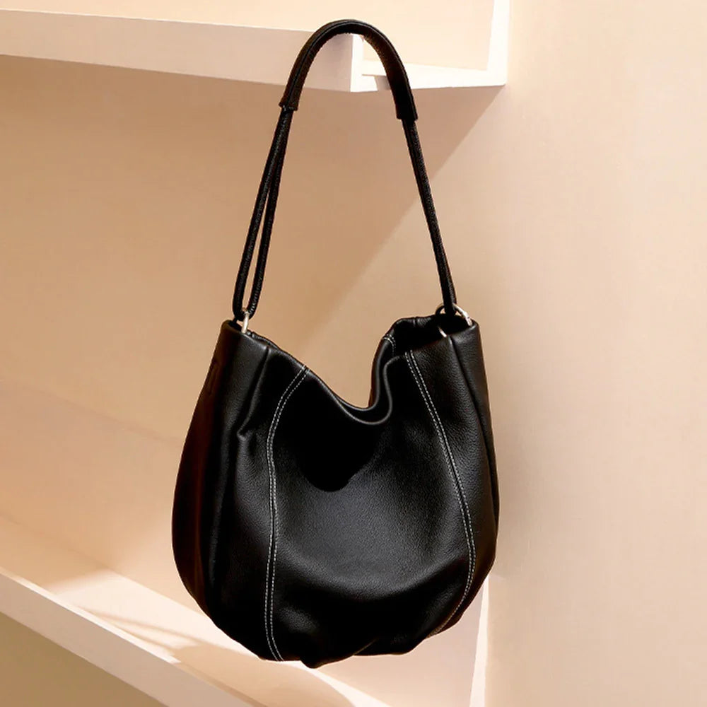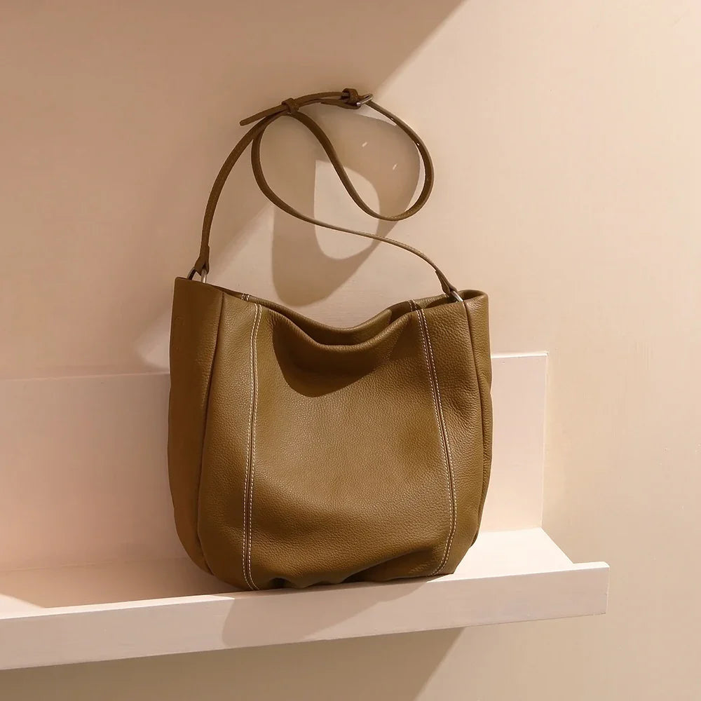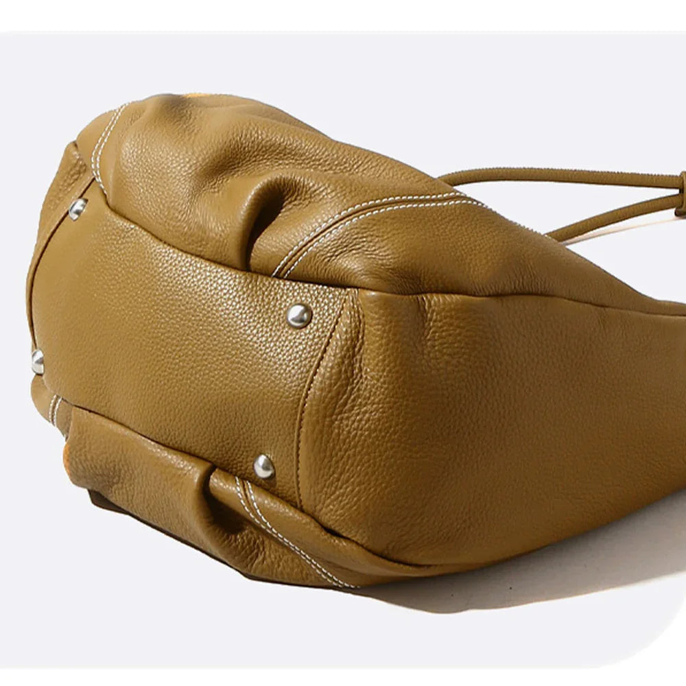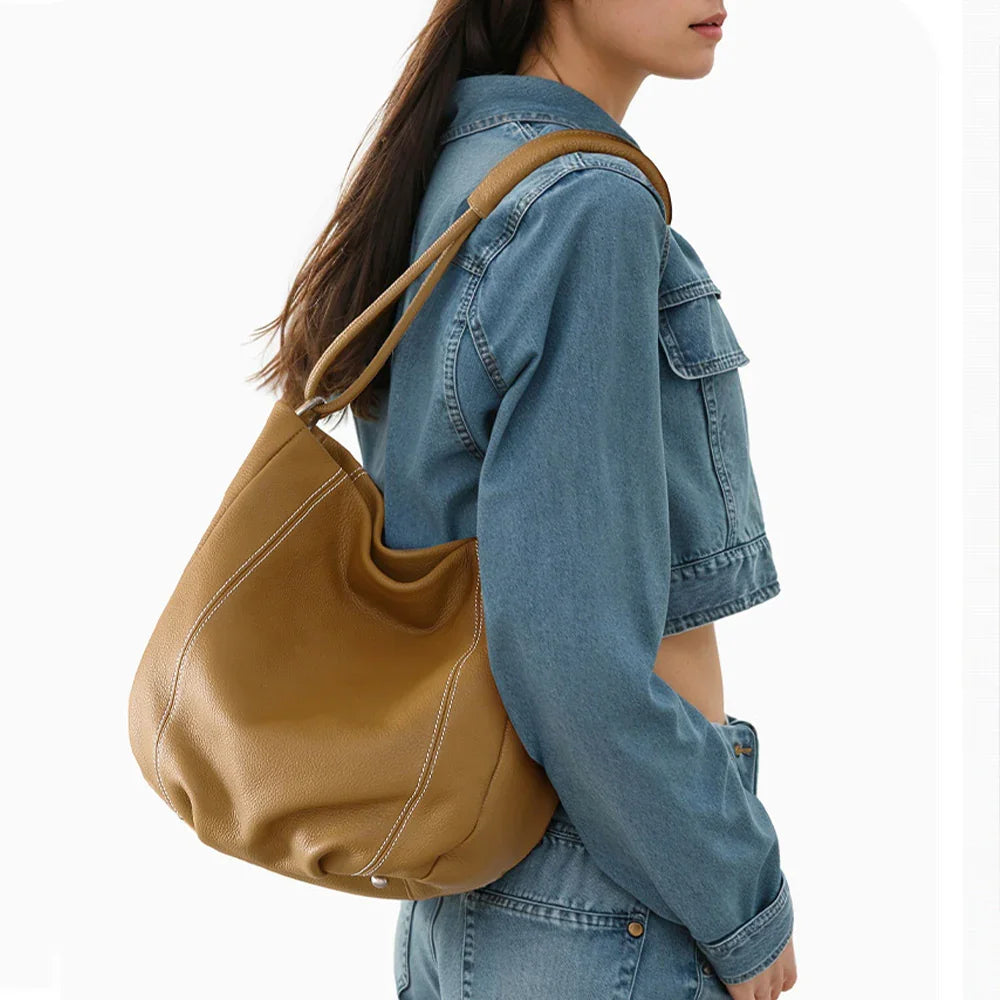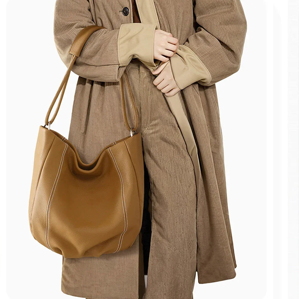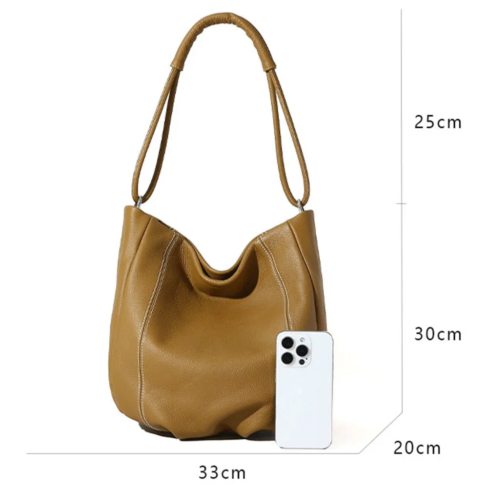 Women's Soft Cowhide Leather Tote Bag – Slouchy Brown Shoulder Handbag with Double Handles, Spacious Daily Purse