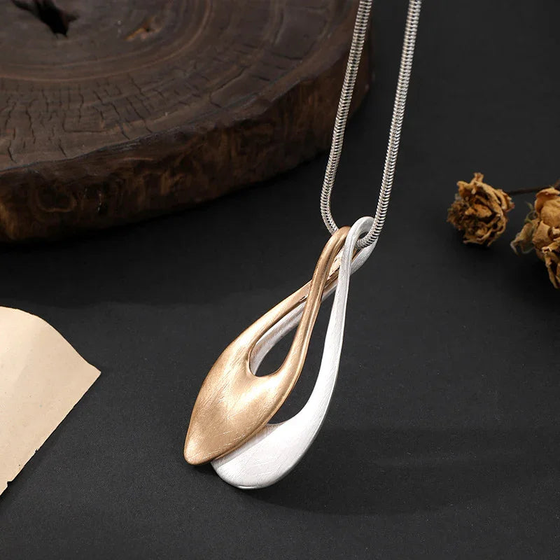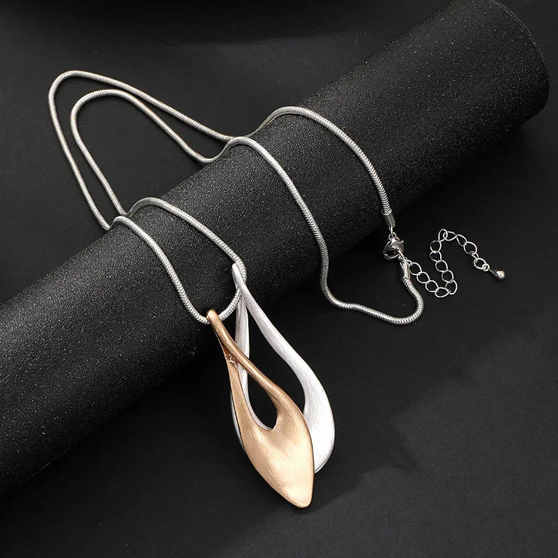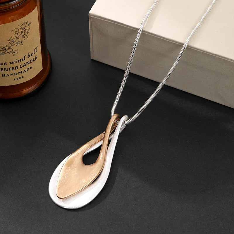 Gold Geometric Pendant Necklace with Silver Beaded Double Chain -