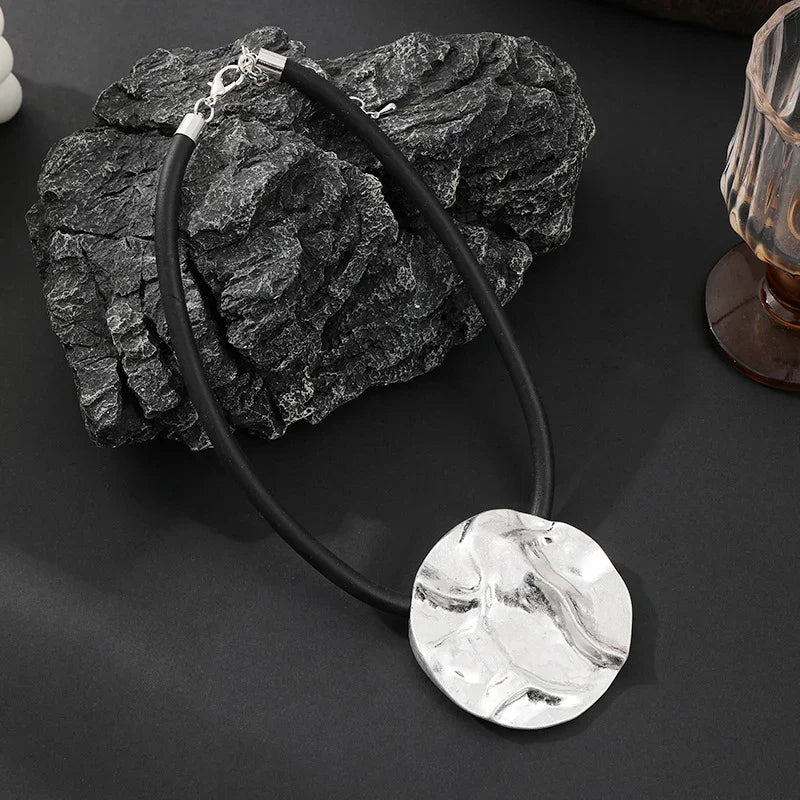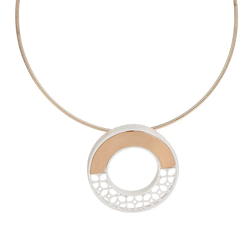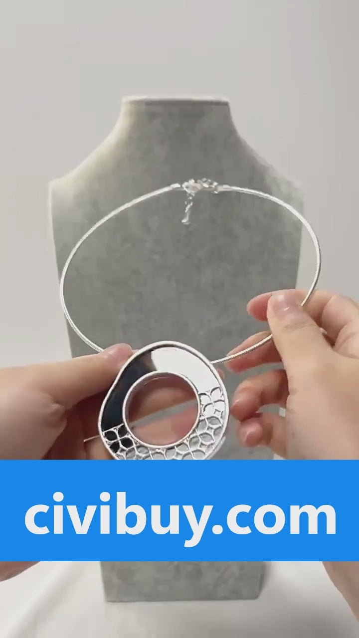 Mixed Metal Disc Statement Necklace with Adjustable Chain -
