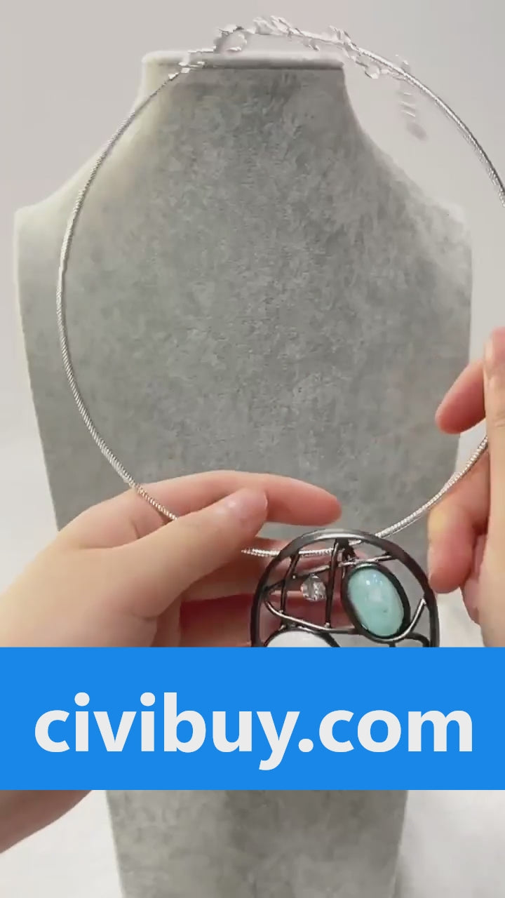 Blue Agate Abstract Pendant Necklace