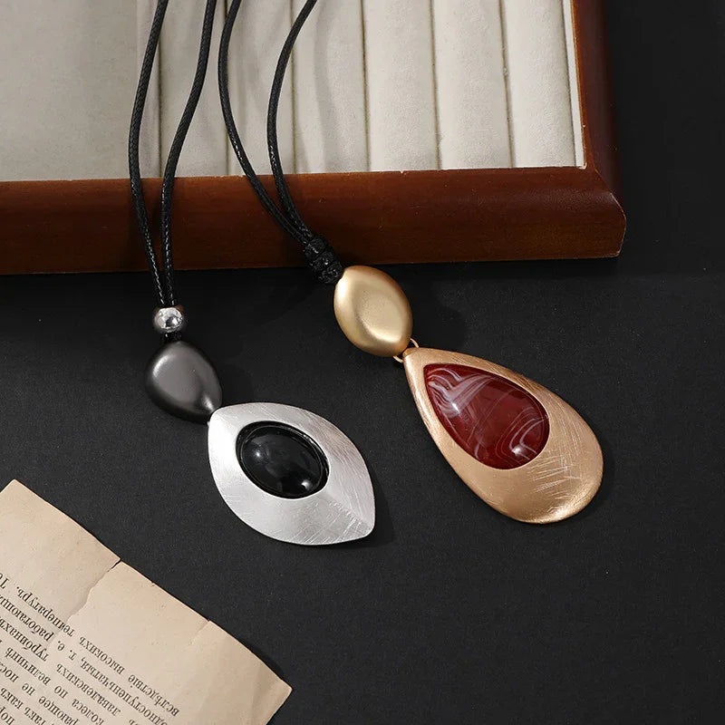 Elegant Teardrop Pendant Necklace with Golden Accent & Red Gemstone